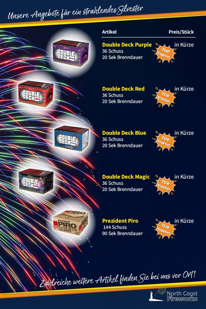 Vor Ort erwartet Sie jedoch ein deutlich größeres Sortiment mit vielen weiteren Top-Feuerwerksartikel in bester Qualität! So können Sie sicher sein, dass Sie bei uns genau das richtige Silvesterfeuerwerk für Sie finden.